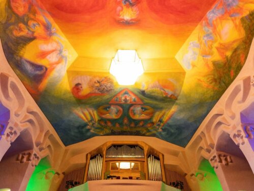 Die Deckenmalerei mit nach Skizzen von Rudolf Steiner ausgeführten Motiven. Empfohlener Beginn: 13.30 Uhr.