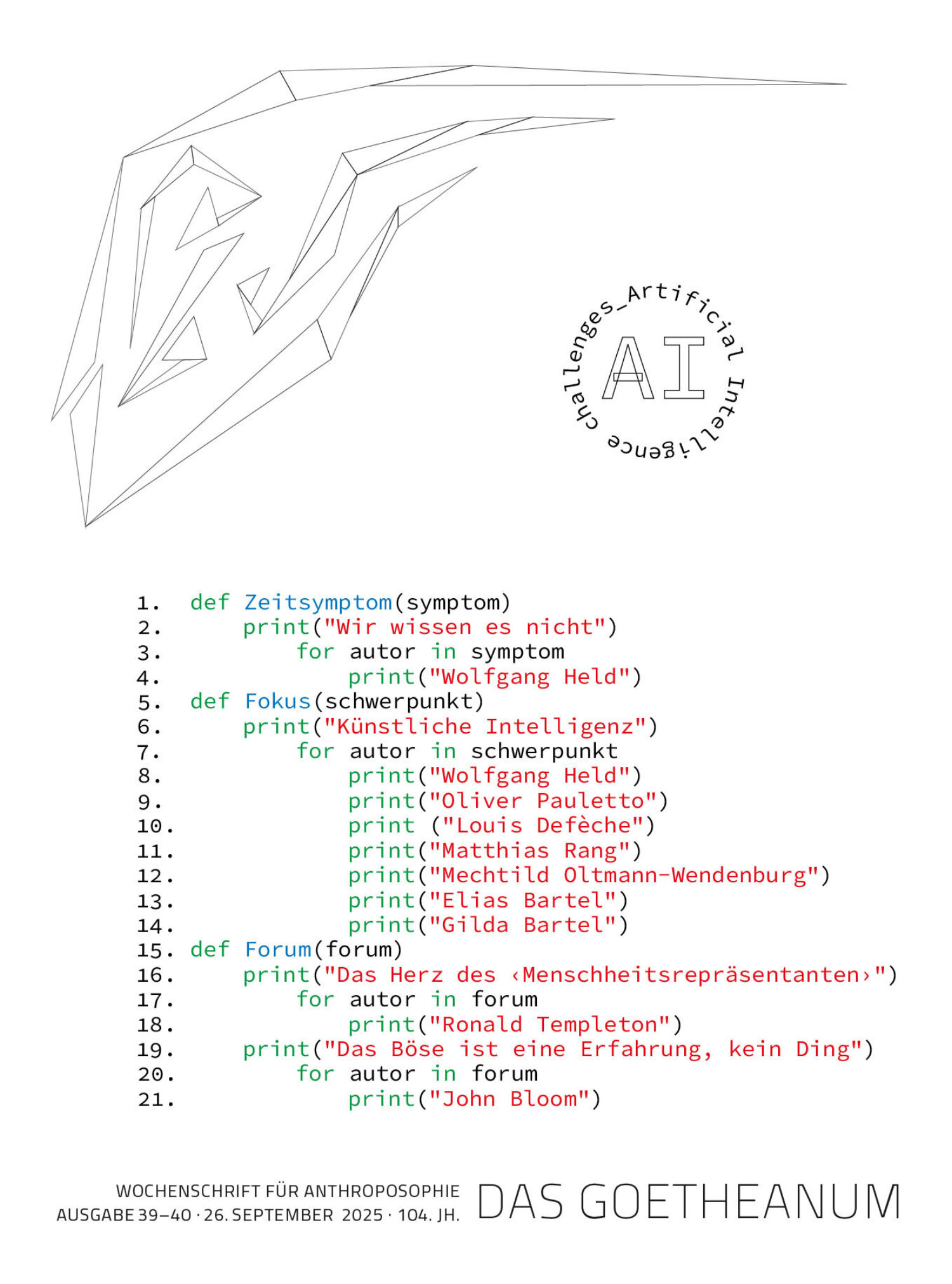 Sprachmodelle wie Chatgpt gehören zu den bemerkenswertesten, technischen Entwicklungen der letzten Jahre; sowohl die sprachliche als auch die inhaltliche Qualität der generierten Texte sind oft bewundernswert. Da ihnen allein der ‹Korpus des Wissens› zugrunde liegt, sie jedoch keinerlei direkten Wirklichkeitsbezug aufbauen können, kann man aber gerade an ihnen eindrücklich studieren, wie sich eine innere logische Struktur eines Textes vollständig emanzipiert davon, ob das Beschriebene einen Wirklichkeitsbezug aufweist oder kontrafaktisch ist, also realen Begebenheiten, wie historischen Ereignissen etc. widerspricht. Durch präzisere Trainingsmethoden gelang es den Entwicklern in den letzten Jahren, kontrafaktische Aussagen, die gerne auch als ‹Halluzinationen› bezeichnet werden, zu reduzieren. Jedoch frage ich mich, ob ihre Anwesenheit weniger als Problem der Programmierung der Sprachmodelle einzuordnen ist, als vielmehr als Charakteristikum eines gigantischen ‹Korpus des Wissens›, der sich in seinen Inhalten von der Wirklichkeit zunehmend zu emanzipieren beginnt. – Was uns im Augenblick überwiegend als vielleicht amüsante Fehlfunktion einer KI erscheint, droht dies nicht in Zukunft die neue Normalität einer mehr und mehr außerhalb der leiblichen Wahrnehmung lebenden Gesellschaft zu werden? Spiegelt uns die künstliche Intelligenz nicht Phänomene, die wir an uns selbst bereits studieren könnten? Aus dieser Perspektive erscheint die Sorge, dass KI-Systeme in Zukunft dem Menschen immer ähnlicher werden könnten, schon deshalb eher unbegründet, weil die Menschen der KI immer ähnlicher werden. Waldorfpädagogik und Goetheanismus in ihrer Zuwendung zur regelmäßigen und bewussten, sinnlichen und leiblichen Erfahrung erscheinen zunehmend als unverzichtbare, existenzielle Forderungen der Gegenwart.